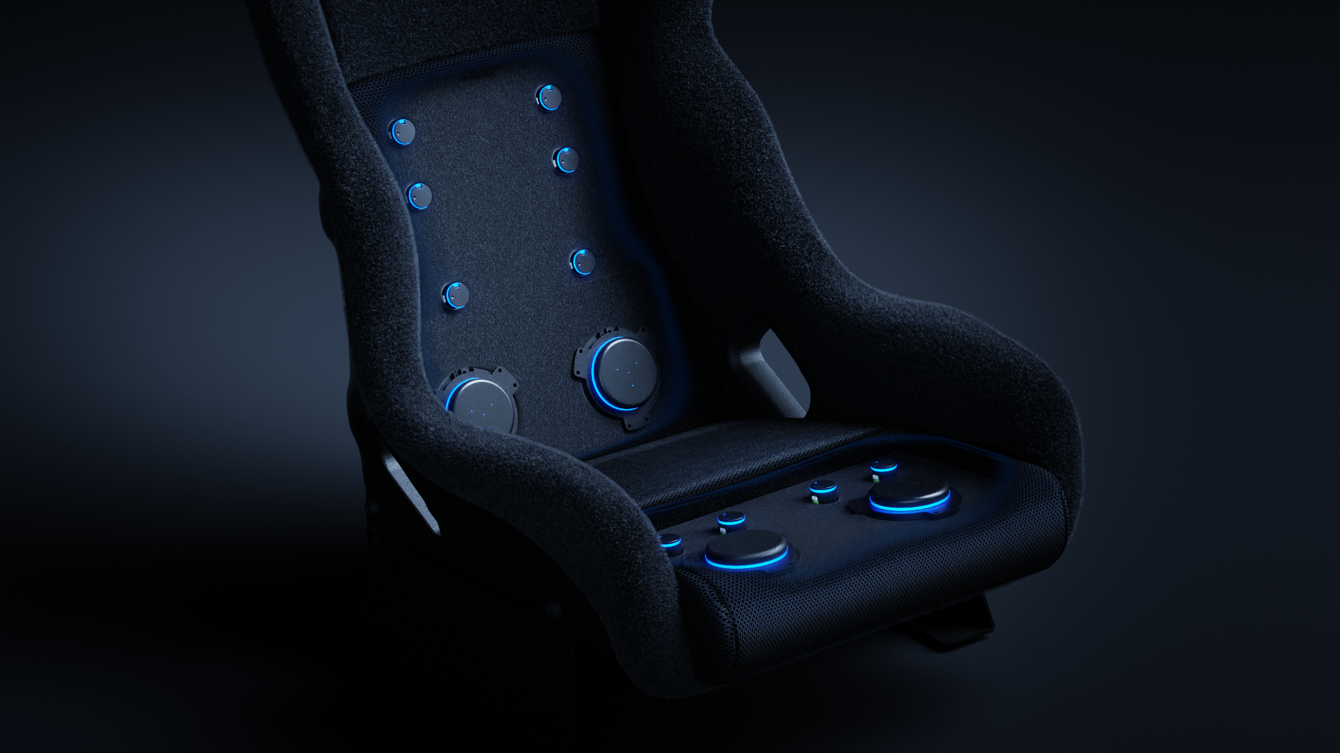 A series of dynamic looping animations and renderings created for the launch of the Sensit! MTC-Pro for Nitro Concepts — a cushion set with integrated Metahaptics that delivers real-time haptic feedback for SimRacing.